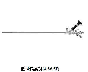 4、精囊鏡技術(shù)的優(yōu)勢(shì):在臨床上還有相當(dāng)一部分血精病例的原因不明。有的即使診斷明確,治療上往往也缺乏有效的治療手段,常常采用抗炎、穿刺抽吸等方法,效果往往并不理想,還存在一定程度的損傷,成為治療上的難題。精囊鏡可通過(guò)射精管進(jìn)入精囊,循正常的精道解剖途徑逆行依次檢查精囊和射精管,發(fā)現(xiàn)病變可同時(shí)腔鏡下處理。如發(fā)現(xiàn)腫瘤,可予以切除,如為結(jié)石,可在精囊鏡(圖4)下檢查進(jìn)行取出或者碎石,炎性改變可在鏡下對(duì)炎性黏膜給予燒灼,對(duì)積血進(jìn)行沖洗等治療,具有操作方便,觀察直接,效果肯定等特點(diǎn),成為診斷、治療血精和少弱精癥的新武器。