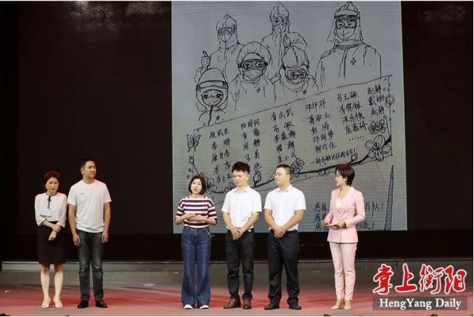 “援助湖北的都是衡陽(yáng)市各個(gè)醫(yī)院的骨干和共產(chǎn)黨員……”“出發(fā)時(shí)我們就堅(jiān)定了信念,一定要打贏這場(chǎng)戰(zhàn)役,哪怕付出所有,甚至是生命……”舞臺(tái)上,衡陽(yáng)首批馳援湖北醫(yī)療隊(duì)隊(duì)員劉軍、郭松文、唐肖春正在與大家分享那段難忘的經(jīng)歷。隨著主持人的指引,他們回頭看向后臺(tái),便看見(jiàn)黃岡市中心醫(yī)院神經(jīng)外科副主任醫(yī)師熊學(xué)輝、黃岡市中心醫(yī)院神經(jīng)內(nèi)科護(hù)士長(zhǎng)李寶云笑吟吟地向他們走了過(guò)來(lái)。頓時(shí),舞臺(tái)上“失了控”,熱情的擁抱、激動(dòng)的眼淚,互訴著“過(guò)命的交情”。