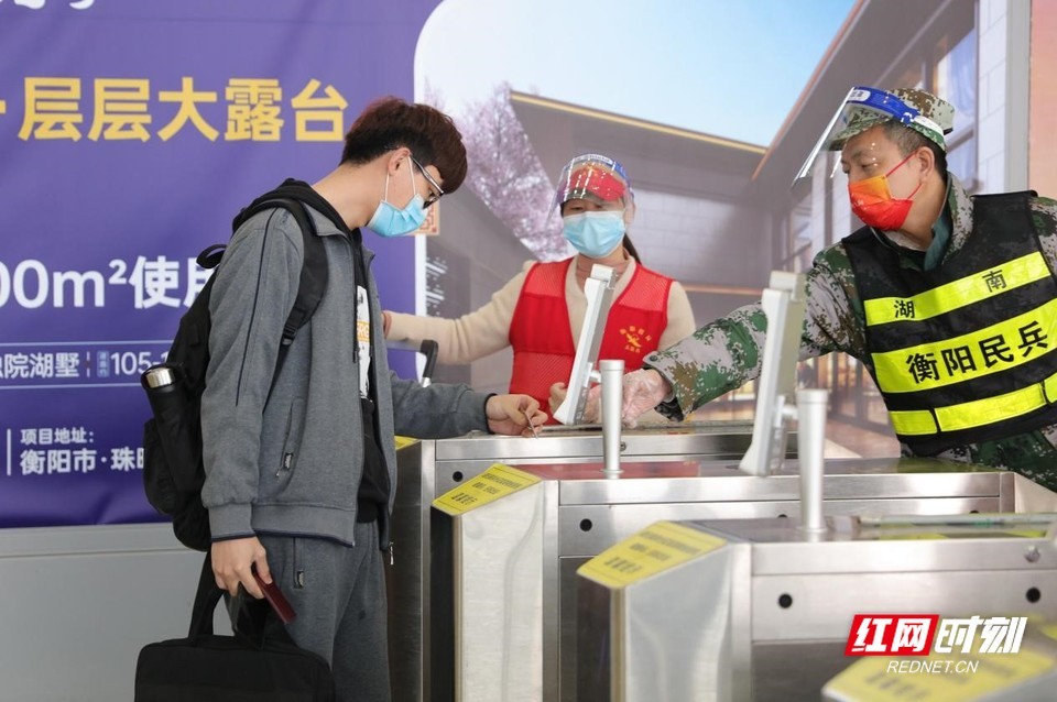 在高鐵衡陽東站進(jìn)站口,“疫情防控監(jiān)督員”微笑著提醒旅客要掃健康碼、行程碼等,查驗(yàn)完畢方可進(jìn)入。