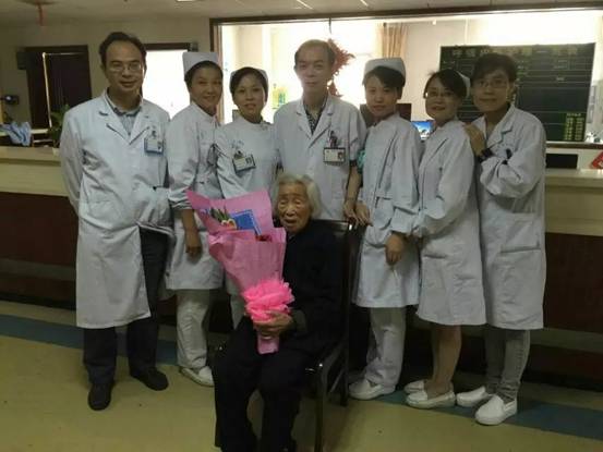呼吸內(nèi)科與百歲老人共創(chuàng)生命奇跡 發(fā)布時間:2015年10月22日 預(yù)覽:5297次 ——刷新建院以來最高齡患者 近日,在呼吸內(nèi)科住進(jìn)了一位特殊的老人,清瘦、慈祥的肖方志奶奶出生于1914年,101歲的高齡卻依然活動自如、精神矍鑠,讓病友們羨慕不已。更讓人稱贊的是,她的子女們24小時不離身,孫子和孫女們也輪流看望陪伴著老人,生活方面更是照顧得無微不至。 如果只是這么靜靜地含飴弄孫,肖奶奶的生命長河也許就這么波瀾不驚地流淌著。可是越接近歲月的尾端,對生活質(zhì)量的需求也就越不容易滿足。2015年10月7號肖老奶奶由于出現(xiàn)咳嗽、喘氣而就診于衡陽市中心醫(yī)院,肖老奶奶被安排在我科12床,詹濟(jì)舟主任非常重視,立即組織科室內(nèi)醫(yī)護(hù)人員會診討論,確診為肺部感染,不排除有肺癌的可能。老人的兒孫們難過之余并沒有放棄對老人的治療,大兒子81歲高齡也無微不至第照顧老人的起居。 住院期間,醫(yī)護(hù)人員都把肖老奶奶當(dāng)作科室的寶貝,用護(hù)士長的一句話說就是捧在手里怕碎了,含在嘴里怕化了。全體醫(yī)護(hù)人員給予她精心的照顧、細(xì)心的護(hù)理、溫暖的撫慰。建立靜脈通道、對癥支持治療、吸氧、保持呼吸道通暢等等。各班護(hù)士不僅夜以繼日隨時觀察和匯報病情,并不時與老人交流溝通做好心理護(hù)理,還及時為老人更換整理床單位、為老人翻身、拍背等等…… 經(jīng)過醫(yī)護(hù)人員的共同努力,老太太的病情得到緩解。 10月15日,詹濟(jì)舟主任和費(fèi)明愛護(hù)士長買了鮮花帶領(lǐng)全科室醫(yī)護(hù)人員祝賀老太太康復(fù)出院,老太太滿是皺紋的臉上掛滿了久違的笑容??吹剿谴认榭蓯鄣男θ?,頓時覺得整個世界都美好了。老太太的子女們也感動地說:“多虧了你們醫(yī)護(hù)人員的精心治療和細(xì)心護(hù)理,你們就像我們的親人一樣。”護(hù)士長握著老奶奶地手親切地說道:“奶奶,我們希望您每天健健康康、快快樂樂的,這對我們來說是最好的回饋。” 10月15日,101歲高齡的肖老奶奶康復(fù)出院。據(jù)悉,這是衡陽市中心醫(yī)院呼吸內(nèi)科的第一例百歲老人,也是迄今為止年齡最大的一位病人。 (曾春秀)