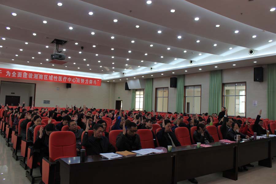 猴年新年伊始,我院召開第八屆一次職工代表大會(huì)。會(huì)議號(hào)召,全院干部職工要牢牢抓住“十三•五”期間的發(fā)展機(jī)遇,保持良好開局勢頭,統(tǒng)一思想,凝心聚力,創(chuàng)新驅(qū)動(dòng),穩(wěn)步推進(jìn),早日建成綜合優(yōu)勢明顯、專科特色突出的湘南區(qū)域性醫(yī)療中心。