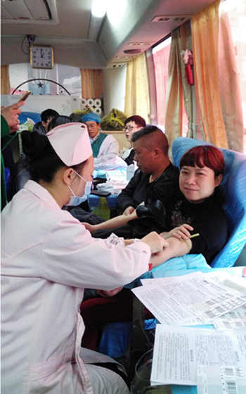愛(ài)心無(wú)價(jià),熱血永恒 發(fā)布時(shí)間:2016年3月2日 預(yù)覽:3476次 ——我院醫(yī)務(wù)人員積極參加無(wú)償獻(xiàn)血 2月26日,醫(yī)院組織醫(yī)務(wù)人員參加無(wú)償獻(xiàn)血活動(dòng)。大家克服各種困難,有的從緊張繁忙的工作中抽出身來(lái),有的利用值班休息時(shí)間專程趕來(lái),有的還動(dòng)員家屬前來(lái),也有的同志已經(jīng)是第四次無(wú)償獻(xiàn)血了。采血現(xiàn)場(chǎng),鮮紅的血液沿著針頭,緩緩流入血袋,愛(ài)心就這樣傳遞著。現(xiàn)場(chǎng)氣氛溫馨而感動(dòng)。當(dāng)天,醫(yī)院共有197人無(wú)償獻(xiàn)血,獻(xiàn)血總量達(dá)60050毫升,充分彰顯了我院醫(yī)務(wù)工作者關(guān)愛(ài)生命、無(wú)私奉獻(xiàn)的人道主義情懷。 (冷曉君)
