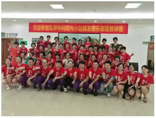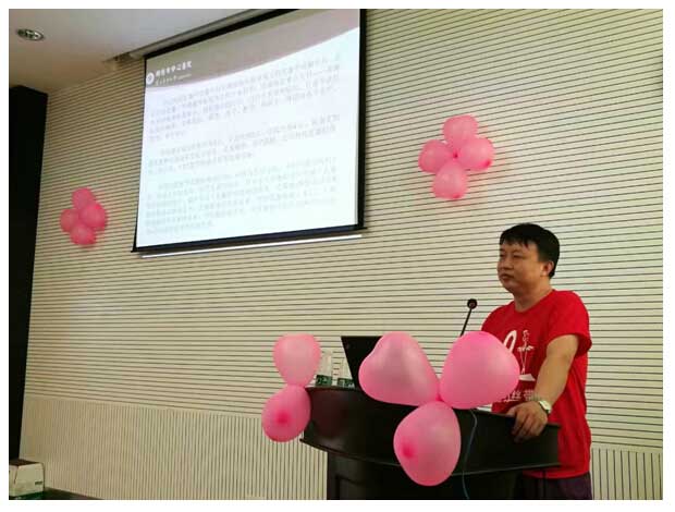 醫(yī)患攜手,重建華彩人生 發(fā)布時間:2016年9月23日 預(yù)覽:2188次 2016年9月13號,乳甲外科陽光小站舉行了第二屆粉紅絲帶乳腺癌關(guān)愛月系列宣教活動。 尹軍主任介紹乳腺癌近年來發(fā)病率及臨床表現(xiàn),以及我院乳甲科近兩年發(fā)展狀況。 羅瓊主治醫(yī)師向患者講解乳腺癌飲食及生活方式方面注意事項。 厲璐主管護師與病友交流 活動合影