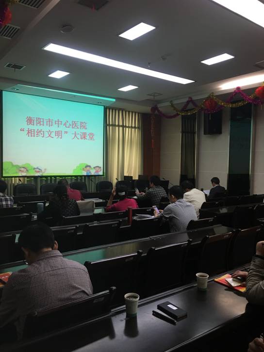 相約文明,開講啦 發(fā)布時間:2016年10月15日 預(yù)覽:2280次 為推進(jìn)文明創(chuàng)建工作的深入開展,2016年9月14日下午,衡陽市中心醫(yī)院“相約文明”大課堂在醫(yī)院21樓多功能會議廳舉行。 “相約文明”學(xué)習(xí)活動,是在衡陽市委、市政府領(lǐng)導(dǎo)下,市委宣傳部和市創(chuàng)建辦組織開展的一項全市性學(xué)習(xí)活動。醫(yī)院創(chuàng)建辦擬定把家和萬事興、我愛我院、遠(yuǎn)親不如近鄰、“痰”吐之間、“堵”在心頭、“讓”出文明、有“禮”走遍天下、舌尖上的文明、E網(wǎng)情深、生財有道等10項內(nèi)容,帶進(jìn)醫(yī)院“相約文明”大課堂,讓全院職工從多個維度中受教育、得啟發(fā)、促提高,早日實現(xiàn)衡陽創(chuàng)建“全國文明城市”的目標(biāo)。 當(dāng)日開講的內(nèi)容是“文明服務(wù)、一起行動”,通過視頻學(xué)習(xí)“醫(yī)務(wù)人員職業(yè)道德規(guī)范”及“醫(yī)院崗位文明用語”,給在場的學(xué)習(xí)者上重溫了一堂生動的醫(yī)院“文明禮儀”課程。 (王恩萍)