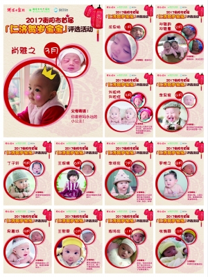 由衡陽日報社主辦、衡陽全搜索網(wǎng)攜手衡陽市中心醫(yī)院共同承辦的“2017衡陽首屆仁濟(jì)賀歲寶寶”評選投票活動已于2017年1月16日中午12點結(jié)束。肖雅之寶寶在36組寶寶中嶄露頭角,以21677票獲最佳人氣獎,將成為新春拜年臺歷當(dāng)之無愧的“封面寶寶”。