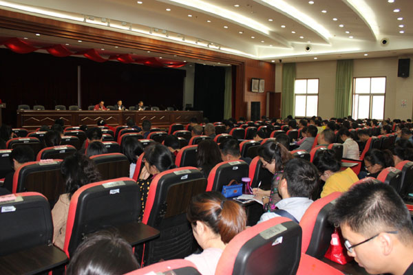 衡陽市中心醫(yī)院迅速組織學(xué)習(xí)貫徹十九大精神 發(fā)布時間:2017年10月31日 預(yù)覽:2148次 通訊員殷君發(fā)報道:10月26日下午,衡陽市中心醫(yī)院召開全體黨員大會,迅速學(xué)習(xí)貫徹黨的十九大和十九屆一中全會精神。院黨委副書記、院長申惠龍以《習(xí)近平總書記<人民對美好生活的向往,就是我們的奮斗目標(biāo)>給我們的啟示》為題,院黨委書記肖友儒以《深入學(xué)習(xí)貫徹落實十九大精神,切實推進當(dāng)前醫(yī)院各項黨建工作》為題講了生動的黨課。醫(yī)院黨委委員、副院長劉志偉主持會議,醫(yī)院領(lǐng)導(dǎo)班子成員、全院近300名共產(chǎn)黨員參加會議。 申惠龍同志著重講了學(xué)習(xí)習(xí)近平總書記《人民對美好生活的向往,就是我們的奮斗目標(biāo)》重要講話的啟示,深入分析習(xí)總書記重要講話的深刻內(nèi)涵,從如何確定市中心醫(yī)院領(lǐng)導(dǎo)班子的奮斗目標(biāo)、醫(yī)院要如何實現(xiàn)奮斗目標(biāo)、干部職工要如何圍繞奮斗目標(biāo)努力工作等三個方面深入講解了學(xué)習(xí)啟示,要求全院干部職工要樹立正確的觀念、努力提高服務(wù)水平、做貼心服務(wù)的表率。 肖友儒同志從十九大和十九屆一中全會概況,十九大的重大意義和突出歷史地位,十九大報告的主要精神,十九大報告的新思想、新論斷、新提法、新舉措等四個方面,全方位解讀十九大和十九屆一中全會主要精神,要求全院黨組織和共產(chǎn)黨員要以貫徹落實十九大精神為動力,切實抓好基層黨支部“五化”建設(shè)示范點創(chuàng)建、“兩學(xué)一做”學(xué)習(xí)教育常態(tài)化制度化落實、用好“三網(wǎng)一庫”黨建智慧平臺、壓實結(jié)對扶貧責(zé)任、創(chuàng)新黨建活動方式等黨建工作。 劉志偉同志要求,全院各支部、全體共產(chǎn)黨員要進一步深入學(xué)習(xí)貫徹落實十九大精神,切實抓好當(dāng)前黨建工作,以實際行動推動醫(yī)院各項事業(yè)發(fā)展。 院黨委副書記、院長申惠龍(中),院黨委書記肖友儒(右),黨委委員、副院長劉志偉(左)。(陳平國 攝) 黨課會場。(陳平國 攝)