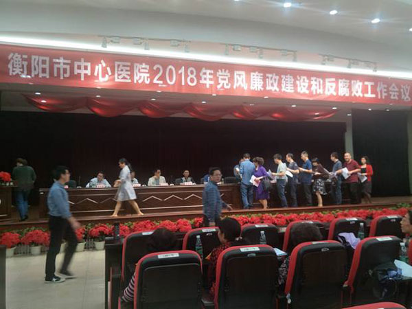 我院召開2018年黨風廉政建設和反腐敗工作會議 發(fā)布時間:2018年4月21日 預覽:2128次 通訊員來臨報道:4月20日下午,衡陽市中心醫(yī)院召開2018年度黨風廉政建設和反腐敗工作會議。中心醫(yī)院在家院領導、中層干部以及黨員共計300余人參加了會議,市紀委駐衛(wèi)計委紀檢組劉全能副組長出席會議并講話。 黨委書記肖友儒做黨風廉政建設和反腐敗工作講話。他指出,2018年是全面貫徹黨的十九大精神的開局之年,要深刻把握當前從嚴治黨形勢,切實增強抓好黨風廉政建設工作的危機感和緊迫感;強化責任擔當,緊緊抓住“兩個責任”不放;扎實推進醫(yī)院黨風廉政建設,維護醫(yī)院安定穩(wěn)定的大好局面。做好新形勢下黨風廉政建設是對干部職工最大的保護、最好的關心。要持之以恒正風肅紀,堅決整治身邊腐敗,營造風清氣正的良好政治生態(tài),為醫(yī)院“二次飛躍”提供堅強的紀律保障。 紀委書記李主慧首先傳達了上級黨委和紀委監(jiān)察委會議精神,總結回顧了2017年黨風廉政建設工作,安排部署2018年黨風廉政建設工作。結合醫(yī)院工作實際,2018年重點要抓好五項工作:一要以落實黨風廉政建設責任制為重點,全面履行“兩個責任”。 二要以警示教育為重點,強化廉潔從醫(yī)的自覺性。三要以落實廉政談話為重點,加強監(jiān)督執(zhí)紀“四種形態(tài)”的運用。四要以加強人財物事的監(jiān)督為重點,全面落實監(jiān)督責任。五要以查辦藥品耗材回扣案件為重點,持續(xù)推進醫(yī)院反腐敗工作。 市紀委駐衛(wèi)計委紀檢組劉全能副組長對我院的黨風、行風、紀檢監(jiān)察工作給予了高度肯定,他強調全面從嚴治黨永遠在路上,反腐倡廉永遠在路上。切實抓好黨風廉政建設工作,一要強化責任意識,促責任擔當;二要強化監(jiān)督管理,促監(jiān)督工作常態(tài)化;三要加強監(jiān)督執(zhí)紀,堅決查處腐敗案件,嚴格執(zhí)行國家衛(wèi)生計生委“九不準”等規(guī)定精神,嚴格按照制度常抓不懈,要敬畏法律、敬畏規(guī)矩、敬畏生命,絕不觸碰法律紀律紅線。 申惠龍院長要求全院各部門、科室一定要切實履行好“一崗雙責”,不折不扣落實好會議精神,并對今后的工作提出了三點要求:一是要提高政治站位,深入貫徹學習習近平同志新時代中國特色社會主義思想和黨的十九大精神,把政治建設擺在首位;二是要切實履行工作職責,救死扶傷、治病救人,做到忠誠、仁愛、擔當;三是要構建反腐敗長效機制,共同創(chuàng)造醫(yī)院美好明天。會上,醫(yī)院支部書記向醫(yī)院黨委遞交了《黨風廉政建設工作目標責任書》,科室部門負責人遞交了《廉政建設工作目標責任書》。