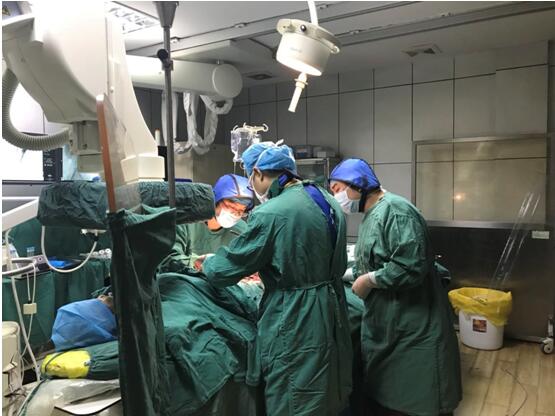 血管介入科涂宏副主任醫(yī)師醫(yī)療團(tuán)隊正在為高齡患者做手術(shù)。