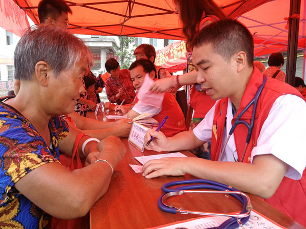 我院聯(lián)合淝田鎮(zhèn)舉行大型義診活動(dòng) 發(fā)布時(shí)間:2018年6月21日 預(yù)覽:2155次 2018年6月21日,為改善耒陽(yáng)市淝田鎮(zhèn)村民尤其是因病致貧、因病返貧老百姓的健康狀況,我院聯(lián)合耒陽(yáng)市淝田鎮(zhèn)黨委、人大、衛(wèi)生院開展健康扶貧大型義診公益活動(dòng)。 在淝田鎮(zhèn)鎮(zhèn)政府大樓前廣場(chǎng),我院副院長(zhǎng)鄒建軍帶領(lǐng)心血管內(nèi)科、神經(jīng)內(nèi)科、呼吸內(nèi)科、骨科、耳鼻咽喉科等經(jīng)驗(yàn)豐富的醫(yī)療專家現(xiàn)場(chǎng)問診、仔細(xì)檢查、健康宣教、開具處方。據(jù)統(tǒng)計(jì),活動(dòng)現(xiàn)場(chǎng)我院免費(fèi)看病近200名老百姓,還免費(fèi)發(fā)放了價(jià)值3000多元的藥品。淝田鎮(zhèn)衛(wèi)生院也免費(fèi)為老百姓量血壓、測(cè)血脂和血糖等。 為籌備這次大型義診公益活動(dòng),我院駐村扶貧工作隊(duì)前期對(duì)淝田鎮(zhèn)百姓疾病譜做了大量調(diào)研工作,統(tǒng)計(jì)分析得知當(dāng)?shù)馗哐獕?、腦血管病等慢性病人較多,將相關(guān)情況向醫(yī)院匯報(bào)后,院領(lǐng)導(dǎo)針對(duì)性地派出對(duì)應(yīng)專科醫(yī)生對(duì)癥診斷和治療,提前通知淝田鎮(zhèn)老百姓來免費(fèi)咨詢和看病,得到了當(dāng)?shù)匕傩盏臒崃覛g迎??赐瓴『?,70多歲的貧困戶蔣菊英奶奶激動(dòng)地說:“沒想到大醫(yī)院的專家會(huì)來我們這里給我們免費(fèi)看病,還發(fā)藥,真是太感謝你們啦”。 (郭偉)