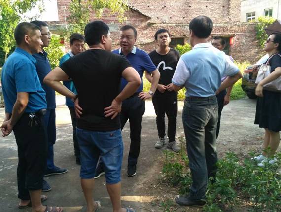 申惠龍院長(左五)一行與當?shù)劓?zhèn)、村干部商討集體經濟事宜