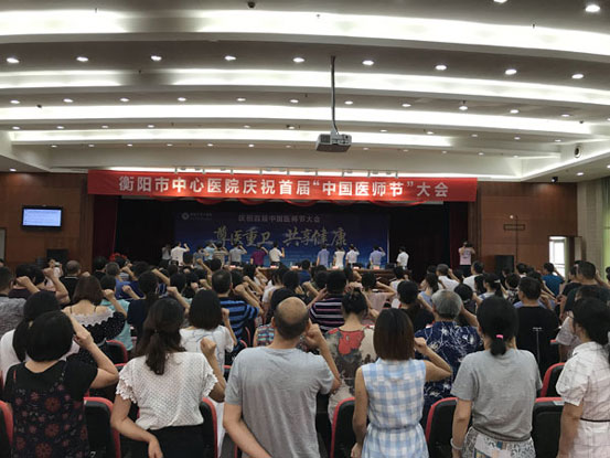 我院召開“首屆中國醫(yī)師節(jié)”慶祝大會 發(fā)布時間:2018年8月20日 預(yù)覽:2522次 通訊員陸昱霖報道:為慶祝首屆中國醫(yī)師節(jié),表彰從醫(yī)30周年醫(yī)師,慰問全院醫(yī)師,大力弘揚“敬佑生命、救死扶傷、甘于奉獻(xiàn)、大愛無疆”的新時期職業(yè)精神,衡陽市中心醫(yī)院于8月17日下午在21樓大會議室召開“慶祝首屆中國醫(yī)師節(jié)”大會。院領(lǐng)導(dǎo)、中層干部、醫(yī)師共計300余人參加了大會,市衛(wèi)計委副主任鄧玉生出席會議并講話,院長申惠龍為大會致辭,院黨委書記肖友儒主持大會。 市衛(wèi)計委副主任鄧玉生,談到了自己參加此次大會的幾點感想:一、醫(yī)師,作為人民健康的“守護(hù)人”,是推動健康中國的主力軍,他們是值得全社會尊重的群體。二、隨著人們健康意識不斷加強,人民群眾在就醫(yī)過程中對于醫(yī)生期望過高,導(dǎo)致醫(yī)師們常年處在高強度工作中,作為上級部門管理者應(yīng)該理解、關(guān)懷醫(yī)師,為醫(yī)師做好后盾和服務(wù)工作。三、衡陽市中心醫(yī)院有優(yōu)秀人才隊伍,中國好醫(yī)生柏太柱、湖南好醫(yī)生廖金文、衡陽好醫(yī)生劉軍,構(gòu)建了一個“好醫(yī)生”矩陣,為全市兄弟醫(yī)院起到了良好的示范帶頭作用,同時也希望中心醫(yī)院的醫(yī)師們繼續(xù)在工作中,做到“三心兩意”——仁愛之心、敬業(yè)之心、感恩之心、責(zé)任意識、奉獻(xiàn)意識。 院長申惠龍向全院醫(yī)師同志致以節(jié)日的問候,并在講話中提到,“中國醫(yī)師節(jié)”的設(shè)立,體現(xiàn)了黨中央對衛(wèi)生健康工作者的關(guān)懷和肯定,同時也是對醫(yī)師奮發(fā)向上、嚴(yán)以自律的激勵和鞭策。衡陽市中心醫(yī)院是一家有著光榮歷史的老院、名院,醫(yī)院的發(fā)展離不開一代代“仁濟”人的薪火相傳,希望醫(yī)院全體醫(yī)師在攀登醫(yī)學(xué)高峰、攻克疑難雜癥方面敢為人先,繼續(xù)取得突破。新班子上任以來,全院齊心聚力,在人才引進(jìn)、培養(yǎng),學(xué)科建設(shè),就醫(yī)環(huán)境等方面都取得了長足地進(jìn)步,在提高醫(yī)師經(jīng)濟待遇的同時積極努力為廣大醫(yī)師構(gòu)筑一個有尊嚴(yán)、有發(fā)展、有幸福感的職業(yè)環(huán)境。并寄語全體醫(yī)師,德才兼?zhèn)涞暮冕t(yī)師是群眾所需、社會所盼,醫(yī)師們在工作中要做到重德、精術(shù)、勤研。 最后院黨委書記肖友儒感謝了全院醫(yī)師的付出和奉獻(xiàn),并勉勵全院醫(yī)生們踐行“敬佑生命、救死扶傷、甘于奉獻(xiàn),大愛無疆”十六字崇高精神在以后的工作中常懷感恩之心、敬業(yè)之心、惻隱之心、自律之心。 此次大會上,副院長劉小平宣讀了衡陽市中心醫(yī)院從醫(yī)30年以上專家名單,全體院領(lǐng)導(dǎo)為從醫(yī)30年以上專家頒發(fā)獎杯。院長申惠龍帶領(lǐng)全體人員重溫醫(yī)生誓言,“衡陽好醫(yī)生”劉軍作為醫(yī)師代表也上臺做了發(fā)言。