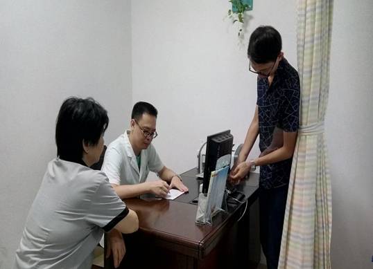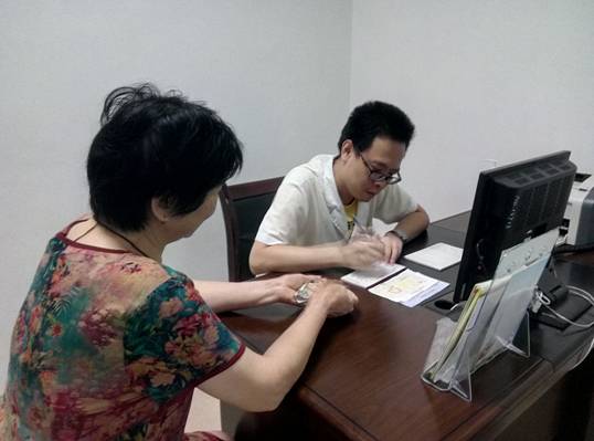 2、二樓服務(wù)臺分診后,醫(yī)師通過問診為病人開出手工處方。