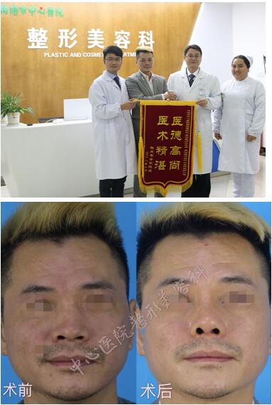 告別畸形,擁有美鼻 發(fā)布時間:2018年11月27日 12:45:19 預覽:2448次 ——衡陽市中心醫(yī)院整形美容科成功修復一例嚴重外傷性鼻畸形患者 近日,衡陽市中心醫(yī)院整形美容科成功為一位車禍后嚴重鼻畸形的患者進行鼻綜合整形手術,效果良好,為患者重拾了自信。 患者為41歲男性,半年前因車禍致嚴重的鼻畸形,鼻梁坍陷、歪斜、鼻骨骨折、鼻中隔骨折、缺損、部分通氣障礙,嚴重影響患者外觀及生活,患者經(jīng)多家三甲醫(yī)院咨詢及面診后,最終確定在中心醫(yī)院整形美容科進行治療。 整形團隊在萬忠波主任、王海醫(yī)生的帶領下,經(jīng)過充分的術前討論,制定了縝密的手術計劃。在麻醉科與手術室的密切配合下成功完成了鼻畸形整形手術。術中患者鼻部疤痕攣縮嚴重,鼻中隔缺損嚴重手術難度較大,手術團隊予以鼻部疤痕松解,取患者自體肋軟骨,進行肋軟骨雕刻后重建鼻中隔并行鼻體三維結構重建,聯(lián)合膨體修復鼻畸形。術后一個月復診時,患者鼻外形得到明顯改善,通氣功能良好,患者及家屬表示很滿意。 患者出院后特意送來一面錦旗感謝中心醫(yī)院醫(yī)護人員,患者高興的說:“你們的技術太高超了,讓我對未來的生活充滿信心”。